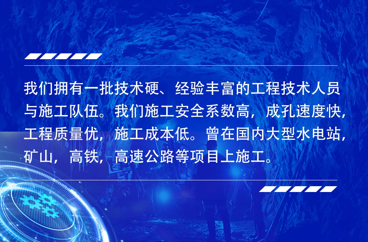 淮北市勤拓礦山工程有限公司是一家從事多年反井鉆機施工的服務(wù)生產(chǎn)型公司,公司目前有十幾臺鉆機設(shè)備,ZFY120/30/150型反井(天井)鉆機5臺,ZFY1.8/40/250型反井(天井)鉆機4臺,ZFY2.5/70/200型反井(天井)鉆機2臺,ZFY3.0/120/400型反井鉆機1臺,ZFY3.5/120/400型反井(天井)鉆機1臺,可承接深度0-300米,成孔直,0.9~4米.1.2~3米的各種豎井、井下煤倉、溜煤眼、通風井、調(diào)壓井、電纜井、泄水井等。我們擁有一批技術(shù)硬、經(jīng)驗豐富的工程技術(shù)人員與施工隊伍。我們施工安全系數(shù)高,成孔速度快,工程質(zhì)量優(yōu),施工成本低。曾在國內(nèi)大型水電站,礦山,高鐵,高速公路等項目上施工。